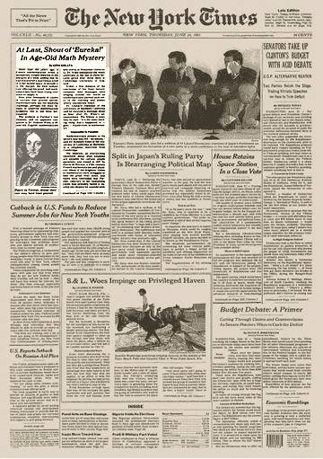 Рис. 14. «Нью Йорк Таймс» от 24.06.1993 г. со статьёй о решении проблемы ВТФ