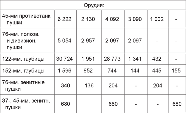 Всего в стрелковых дивизиях орудий среднего калибра – 13 130.