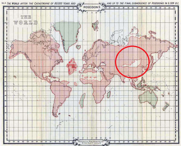 Рис. 1б. Центрально-азиатское (Гобийское) море перед затоплением Посейдониса – последнего острова Атлантиды в 9564 г. до н. э.