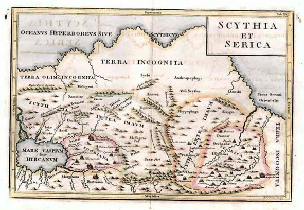 Однако осталось ещё достаточно не уничтоженных свидетельств того, что скифы воевали с Древним Египтом, основывали мощные государства в Месопотамии, Центральной Азии, Палестине, Индии и Китае, что почти весь континент Евразия, вплоть до Заполярья, 5 тысяч лет назад был занят огромной империей – Великой Скифией. Вспомним хотя бы, что сравнительно недавно люди знали, что в древности Ледовитый океан назывался Скифским. Например, на карте Скифии и Серики Кристофера Селлариуса (Christopherus Cellarius), изданной в 1703 в Германии, на которой можно увидеть древнее название реки Волга – РА (Rha) слева и Гиперборейский или Скифский океан вверху (рис.1). Кроме того, сейчас стали широко доступны результаты археологических раскопок, и мы теперь можем увидеть внешность скифов и воочию убедиться, что ничего иранского, читай восточного, в их внешности и близко нет. У скифов мы видим черты белой расы, более того – это черты современных русских людей, и сейчас проживающих на территории России.