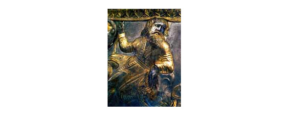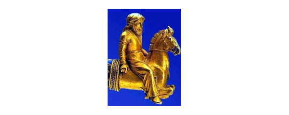В скифских курганах найдены сотни скифских золотых предметов с изображёнными на них скифами. Ниже вы видите скифов на золотой пекторали – нагрудном княжеском украшении из кургана Толстая Могила (Днепропетровская обл. Украина).