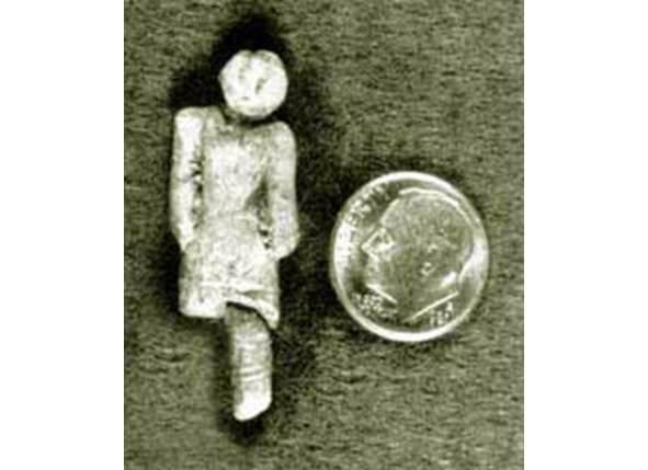 Эта круглая пластинка, напоминающая монету, была, как сообщается, извлечена с глубины около 114 футов при бурении колодца в местечке Лоун-Ридж, Иллинойс. По данным Геологоразведочного управления штата Иллинойс, возраст отложений, в которых была найдена «монета», находится в пределах от 200 до 400 тысяч лет