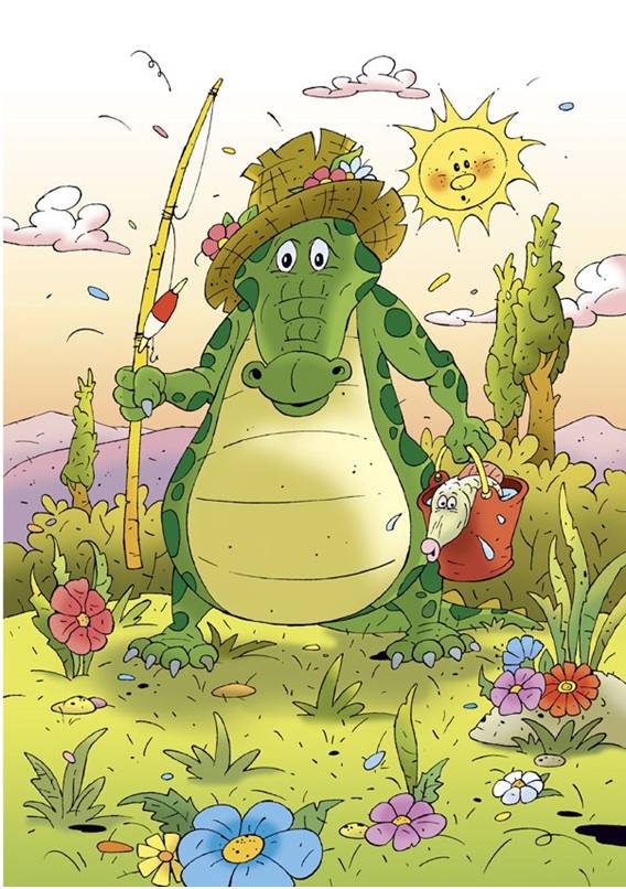 Но тут послышались тяжелые шаги. Это пришел крокодил Кроко Роко. А если ты помнишь дружок, он не выговаривал букву «В».