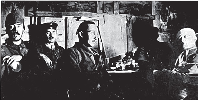 Гитлер (слева) в землянке на фронте