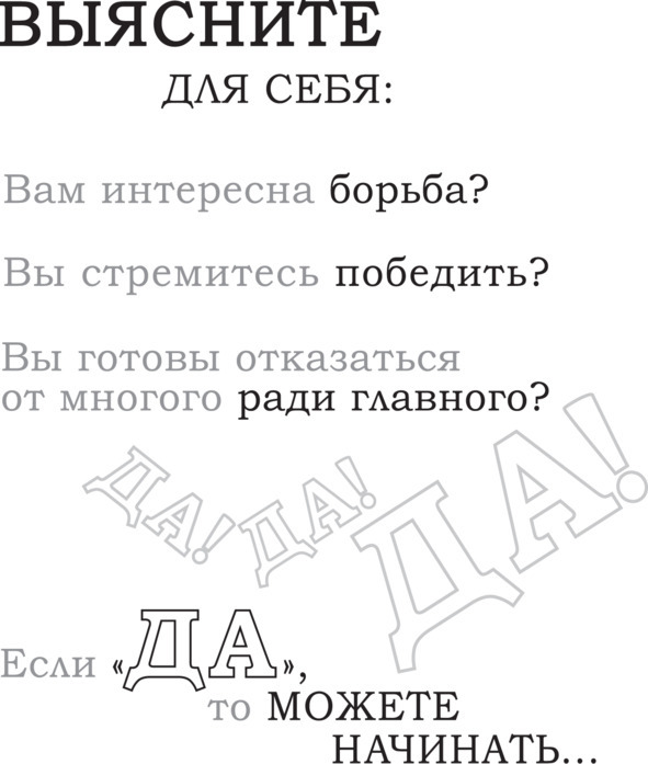 Рецептов успеха бесчисленное множество, но я не собираюсь уверять читателей в том, что мои размышления и выводы, основанные на личном опыте (кстати, это одна из немногих вещей, которую нельзя приобрести за деньги), обязательно сработают в любой ситуации.