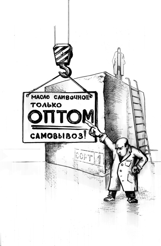 …В 1994 году я познакомился с предпринимательницей, которая создала бизнес по фасовке масла. Работая на фабрике, выпускавшей сливочное масло огромными кусками, она стала свидетельницей резкого и неприятного разговора одного из своих руководителей с покупателем. Клиент умолял продать ему лишь часть от большого куска масла, соглашаясь заплатить цену за весь кусок, но начальство отказалось наотрез, так как на фабрике не было возможности поделить большой кусок на два. Тогда будущая предпринимательница вызвала своего мужа, и они вместе с клиентом вручную разрезали огромный кусок масла (уже приобретённый приезжим покупателем) и увезли каждый свою долю. На следующий день в городе N появился бизнес по фасовке сливочного масла.