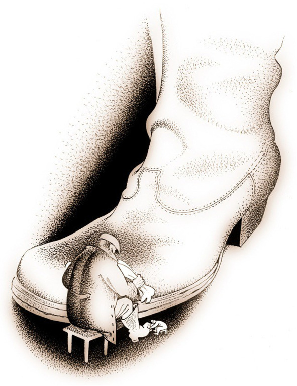 Он – неболтливый и добросовестный сапожник средних лет, и Он всегда мечтал чистить сапоги самому Ему.
