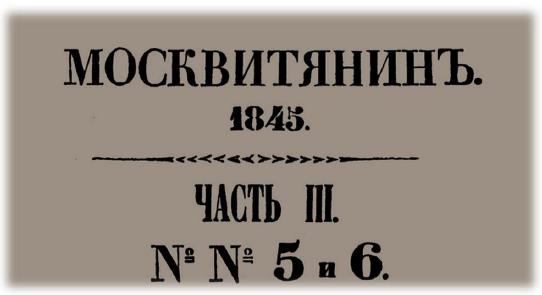 Н. Иванчинъ – Писаревъ. Журнал МОСКВИТЯНИН 1845 год.№ 6 стр 83–94.
