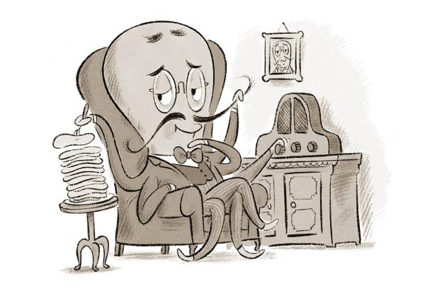 Ниже этажом располагалась квартира профессора Кальмари, осьминога. Целыми днями он слушал радио и ел оладушки.