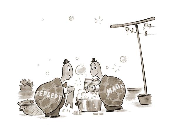 На крыше кирпичного дома под бельевыми верёвками жили черепахи – братья Майк и Герберт. Отличали их друг от друга по именам на панцирях.