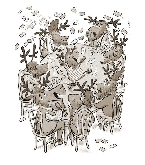 – Это всего на часик, – взмолился папа Лось, – пока мы в карты играем. Просто бедный наш Лосятка очень нервничает, когда кто-то кричит «Бита!».