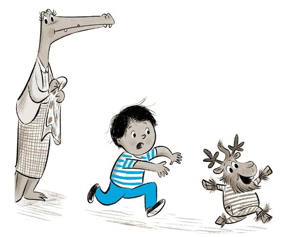 – Так, – начала тётушка Аллигатрия, но тут в трубке раздался щелчок, а после тётушка услышала топот копыт по лестнице. В дверь постучали. Тётушка Аллигатрия открыла. На пороге стоял папа Лось, а на плечах у него сидел Лосятка.