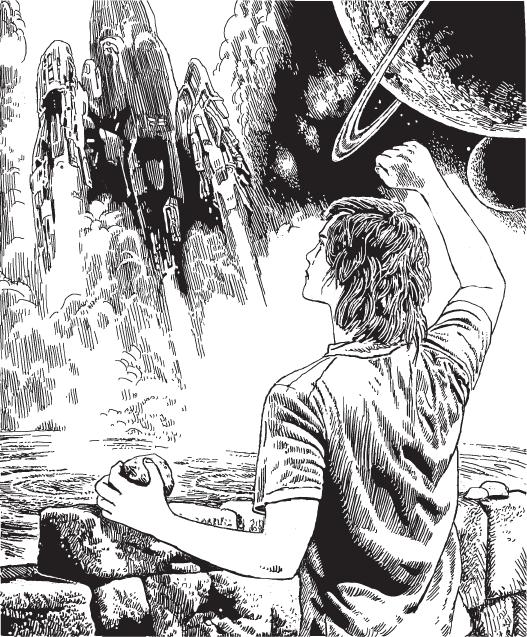 Его спасли собственные глаза, по-прежнему устремленные на экран, а потому сумевшие все увидеть и заставить разум воспринимать происходящее. Безумный страх отступил. На экране появилась странная огромная мертвенно-бледная равнина – сплошной камень. Примерно такой, наверное, виделась Великая Пустыня Даст[2] с вершин обступивших ее гор. Но как он снова там оказался? Ах да, он же летит на воздушном корабле! Точнее, на космическом. Край равнины сверкнул, точно луч света на поверхности моря. Но в пустыне Даст воды никогда не было! Что же он тогда видит? Каменистая равнина превратилась вдруг в огромную, полную солнечного света чашу. Он с изумлением смотрел, как эта «чаша» становится все более плоской и свет как бы выплескивается из нее через край. Вдруг от «чаши», почти превратившейся в круг, как бы отсекли абсолютно ровный с геометрической точки зрения сегмент. За ним была чернота. И тут же вся картина полностью переменилась: это была уже не «чаша», полная света, а нечто выпуклое, как бы отвергавшее свет, отражавшее его и постепенно превращавшееся в сферу из белого камня, стремительно падавшую куда-то вниз, в черноту. То была его родная планета Анаррес.