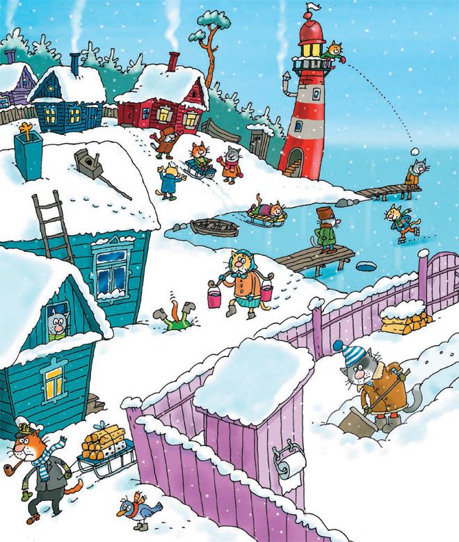 Чего-чего, а снегу на Севере всегда хватало. Но в первых числах декабря на Котьму обрушился небывалый снегопад. Такого даже старый Тимофей Тимофеич не припоминал: снег шёл три дня подряд, засы́пал заборы, сараи и дома по самые крыши. У некоторых изб из снега торчали только печные трубы, возле которых грелись воробьи и вороны…