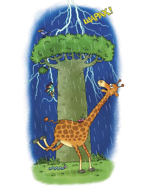 К вечеру гроза стихла. На тёмном африканском небе вы́сыпали звёзды.