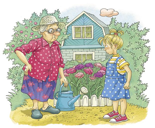 Жёлтая песчаная дорожка привела её к небольшому домику. У домика маленькая старушка поливала из лейки цветы.