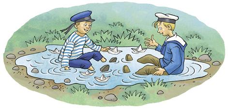 Возле дома, в огромной луже, сидели два маленьких мальчика и пускали кораблики.