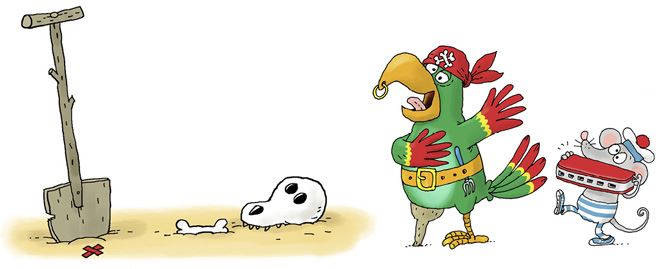 – Мы согласны, – сообщил попугаю Афоня. – Четвёр-тая часть сокровищ – твоя.
