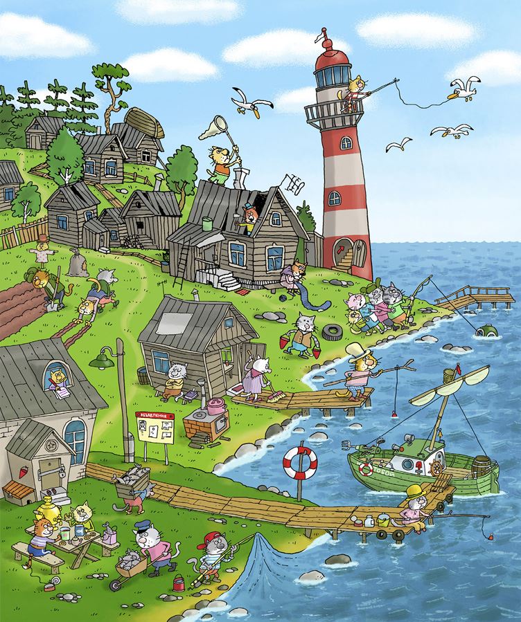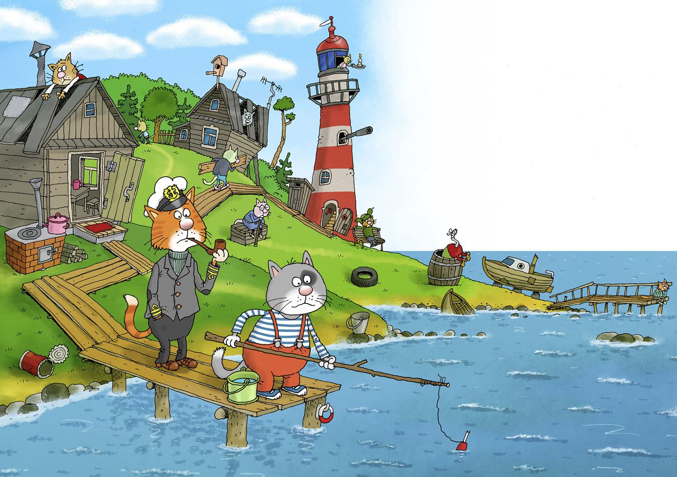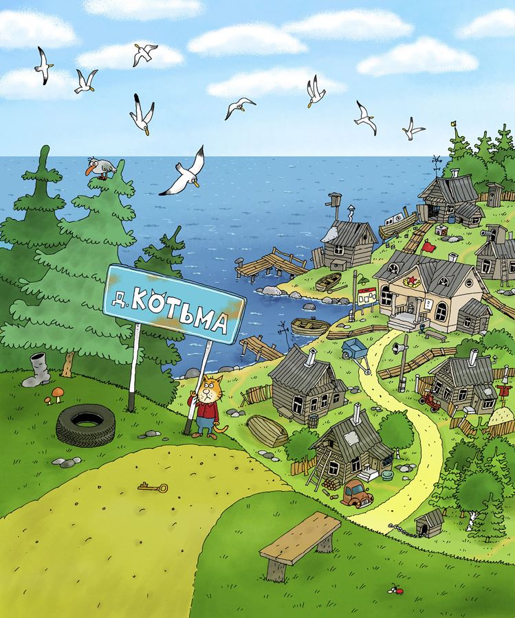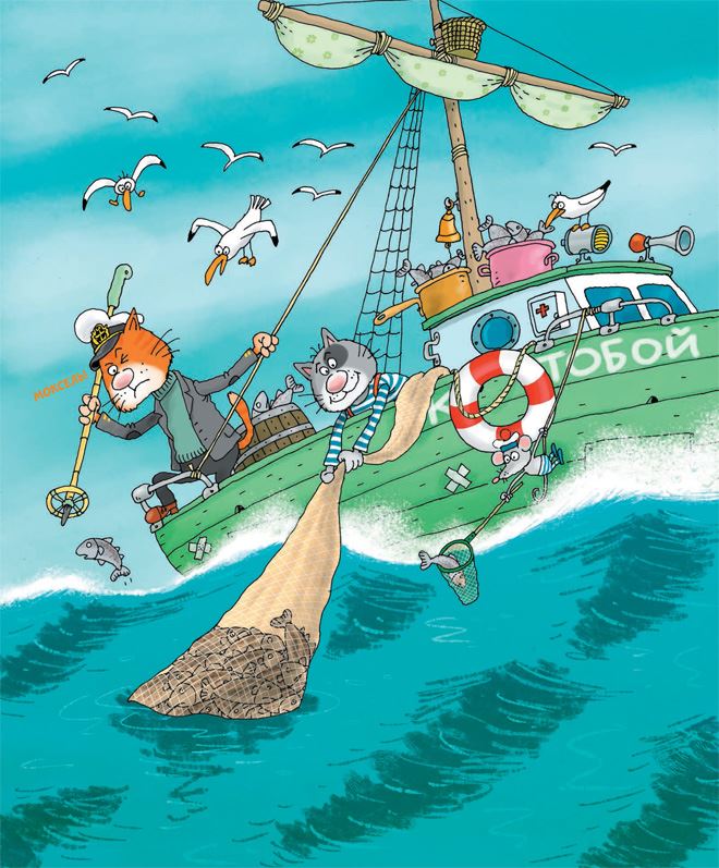 Когда люди переехали из Котьмы в город, нелегко поначалу было котам. Но со временем пообвыкли: кто шерсть прял да носки вязал, кто огород стал сажать, а кто и рыбачить начал. Море-то под боком. А где море, там и рыба. А где рыба, там и кот!