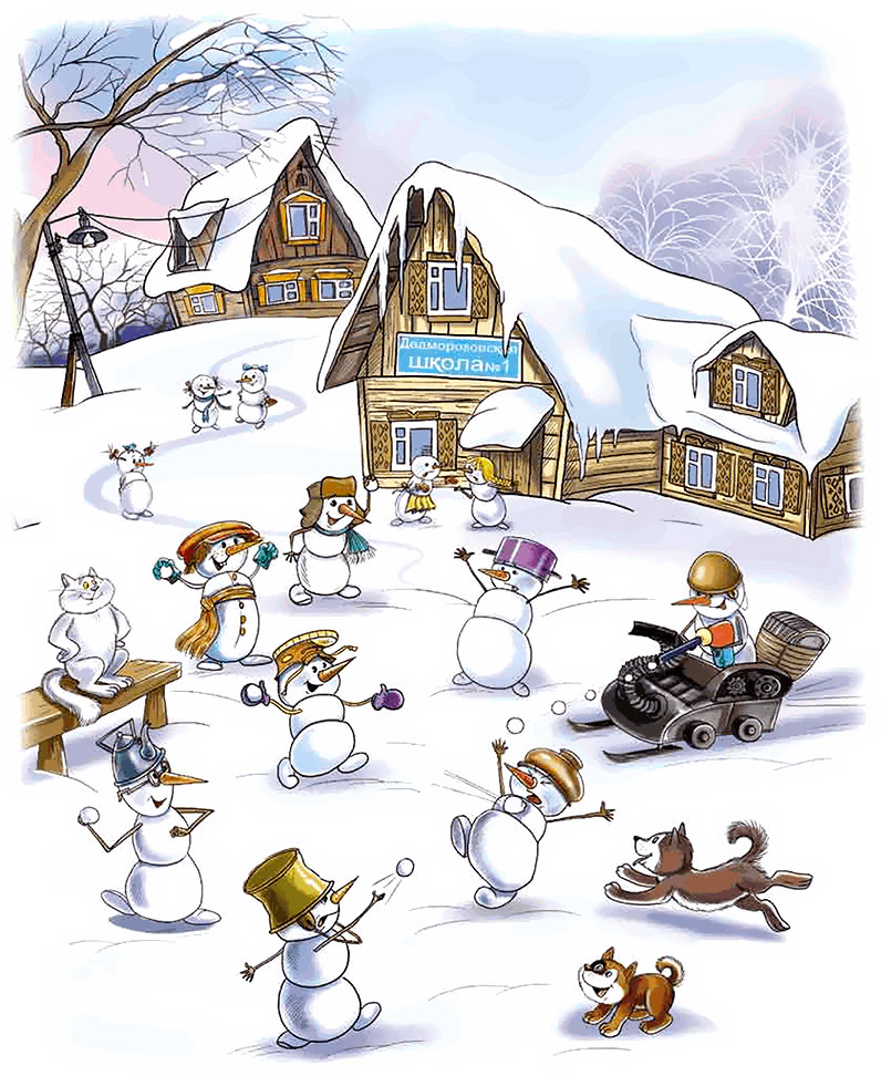 – Не снеговики, а грязевики какие-то, – сердилась Снегурочка, оглядывая перепачканных помощников. – А ну-ка быстро оттираться чистым снегом!
