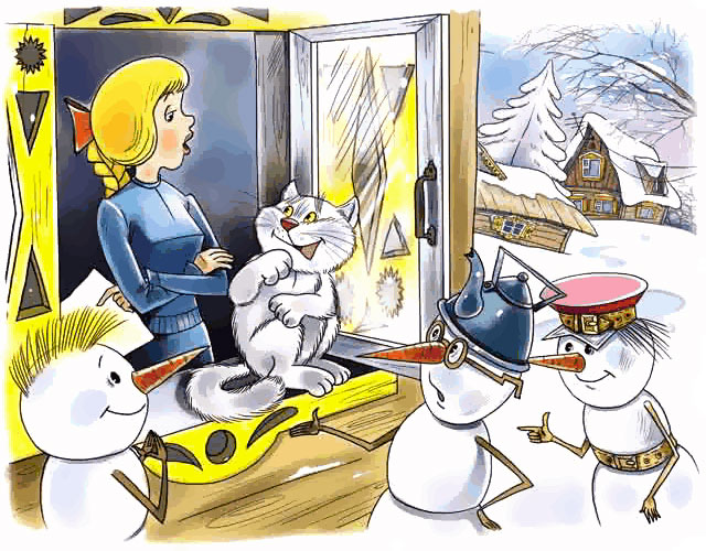 – Я бы ей вышел! – сказал Федька и, запустив в снеговика еловой шишкой, бросился удирать.