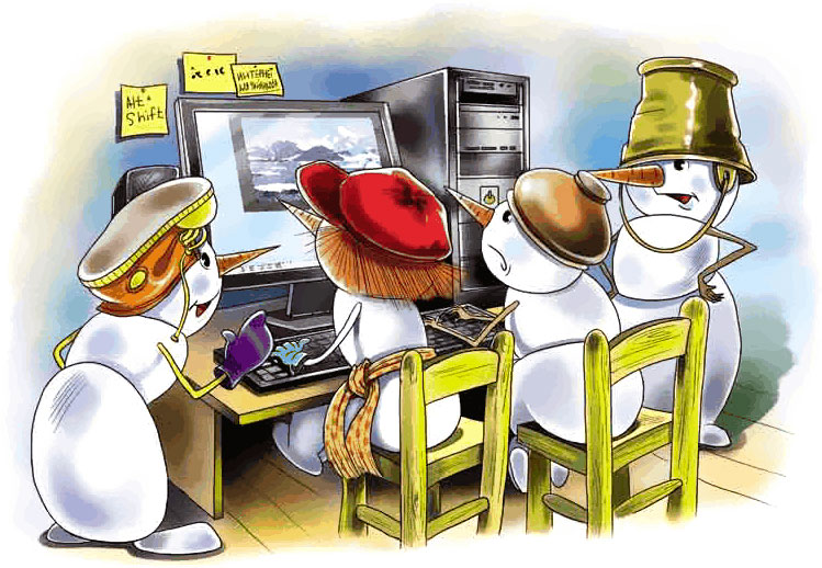 Так в дедморозовской школе появился новый предмет – информатика. Снегурочка была хорошей учительницей и, несмотря на свою нелюбовь к компьютерам, старательно разъясняла, как они устроены, как нужно пользоваться разными программами и приложениями и где искать полезную информацию, – в общем, всё, чему её научили на курсах. Однако уже через две недели выяснилось, что снеговики разбираются в компьютере не хуже чем учительница.