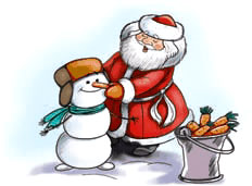 Дед Мороз собственноручно сделал всем носы из морковки: снеговикам – побольше, снегови́чкам – поменьше. Затем стукнул три раза посохом и произнес волшебное заклинание: