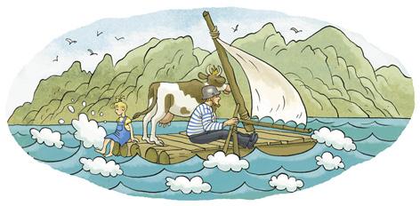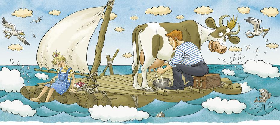 Тем, кто не боится бурь,Не страшен никакой буль-буль!Несмотря на усиливающуюся качку, корова держалась очень мужественно: по-матросски широко расставив все четыре ноги.