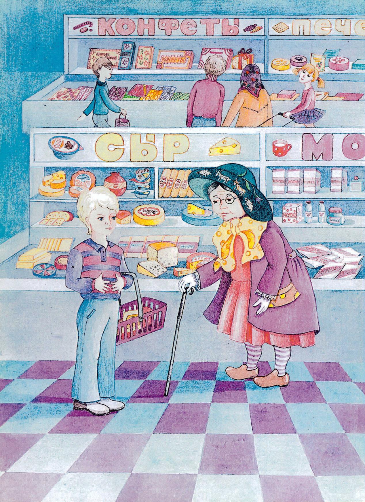 As for Vovka, he liked cheese since he could remember himself. When Vovka became old enough to help his Mama and go out all by himself, he would do the shopping on the ground floor of their apartment building (because they had a grocery store there) almost every day. Usually he bought everything that his Mama had told him to buy – and some cheese. He knew all sorts of cheese. Not all the sorts in the world, of course, only the ones that were sold in shops. He never mixed them up. One glance was enough for him to tell whether it was Poshehonskij or Radonezhskij, Altaiskij or Lamber, Yaroslavskij or Edam, Kostromskoj or Gollandskij, Gornij or Rossijskij, Swiss cheese, brynza, Camamber or any other.