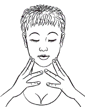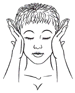 6. «Раздраженная» (способствует общей подтяжке кожи лица). Слегка отклоните голову назад. Прижмите ладони к лицу. Совершая круговые движения, медленно двигайтесь от челюсти к вискам, а затем по скулам к вискам. Затем средними пальцами рук, слегка надавливая, начните с внутреннего угла глаз, продолжите вдоль линии бровей до внешнего угла глаз, затем медленно следуйте к вискам, где задержитесь на мгновение.