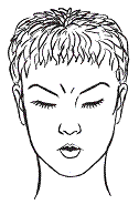 7. и 8. «Малышка хмурится» и «Львенок» (стимулируют циркуляцию и снимают напряжение). Для первого упражнения сильно нахмурьтесь: совсем закройте глаза, сожмите губы, напрягите подбородок. Сосчитайте до пяти, затем переходите к упражнению «Львенок». Выдохните как можно сильнее, расслабьте все мускулы и громко выкрикните, высунув язык как можно дальше.
