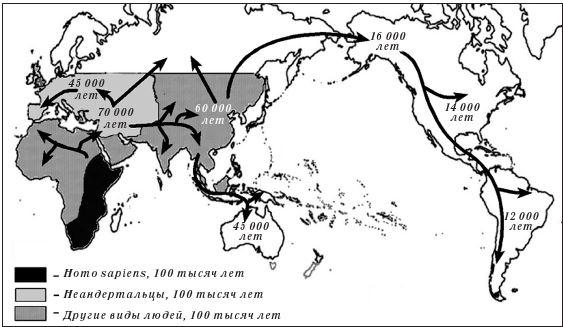 Существуют две взаимоисключающие теории. Теория межвидового скрещивания повествует о сексуальном притяжении, общении и смешивании. Мол, пришельцы из Африки, разбредаясь по всему миру, брали себе в подруги всех красоток, каких видели по пути. В итоге различные популяции Homo sapiens унаследовали кое-что от местных генов, и этим объясняются различия в наших физических и умственных характеристиках.
