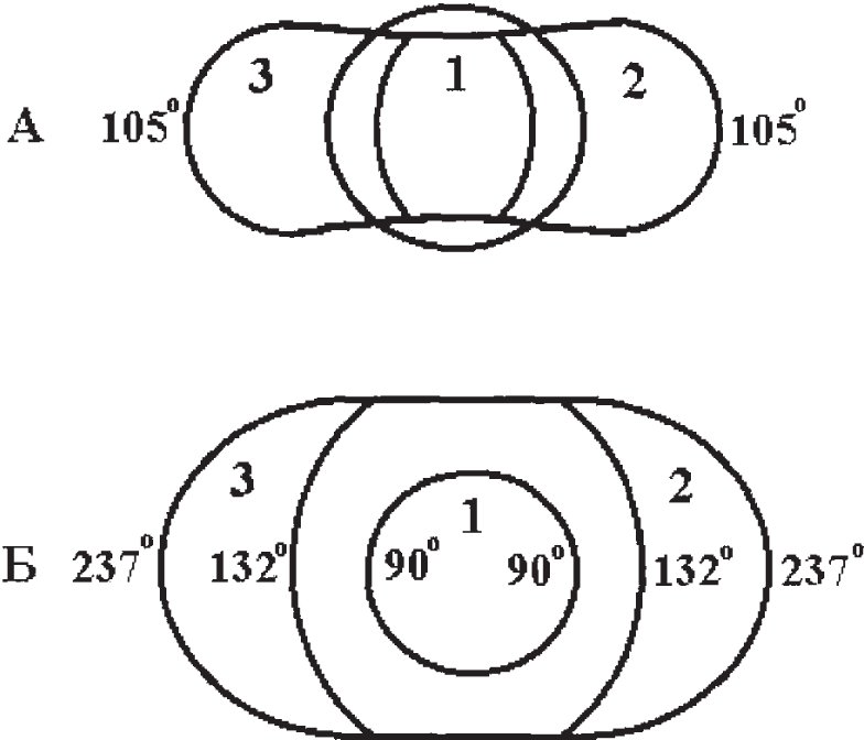(1 – бинокулярное зрение; 2 – направление в правую сторону; 3 – направление в левую сторону)