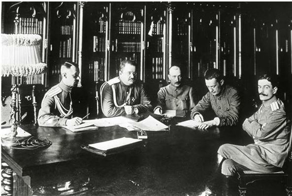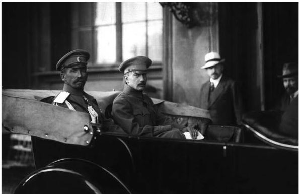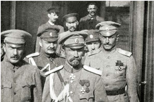 Б. Савинков с генералом Л. Корниловым во время «Корниловского мятежа» (Савинков крайний слева)
