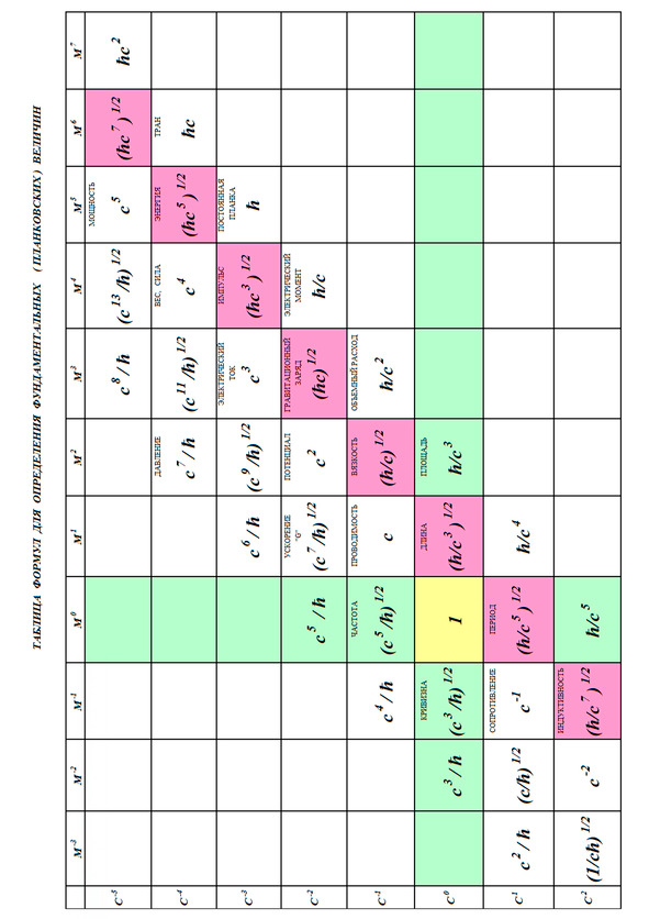Вашему вниманию предлагается еще один вариант нашей таблицы. Это «Таблица формул для определения фундаментальных (Планковских) величин».