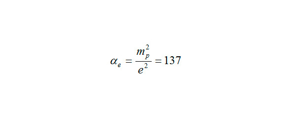 Если взять отношение квадратов гравитационного заряда фотона, частицы Планка, и электрического заряда электрона, получим величину постоянной тонкой структуры: при этом