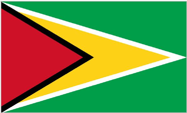 На флаге Гайаны зеленое поле символизирует богатую природу и сельское хозяйство, красный треугольник – упорство и динамику, желтый – богатство природных ресурсов. Черная окантовка – стойкость, а белая – мирную жизнь и водные артерии страны.