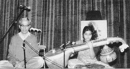 Дешикачар поет вместе со своей десятилетней дочерью Мекхалой, аккомпанирующей на вине. Германия, 1992 г.