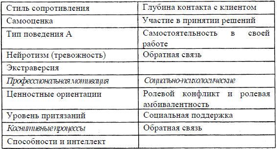 Наличие связей между этой группой факторов и выгоранием в какой-то степени объясняется не только действительным их влиянием на данный феномен, но и их объективным содержанием, возможностью количественного измерения и однозначного понимания.
