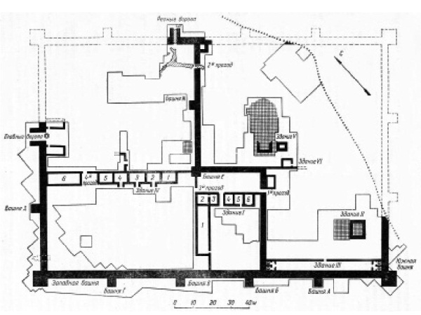 * * *Саркел (Левобережное Цимлянское городище) – это кирпичная миниатюрная крепость, 178,6 х 117,8 м по внутреннему периметру. В жилищах нет ни малейших признаков, отличающих эти постройки от известных по сельским поселениям. Ничем не выделяется и материальная культура. Кирпичные помещения внутри крепости, на мой взгляд, вероятнее всего складские помещения, арсеналы. Для жилья они мало пригодны, особенно в зимнее время, так как для поддержания внутри них плюсовой температуры требовался бы большой расход топлива.