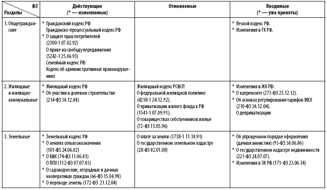 КОДИФИКАЦИЯ ОСНОВНЫХ ФЕДЕРАЛЬНЫХ ЗАКОНОВ, ПРИМЕНЯЕМЫХ В СФЕРЕ НЕДВИЖИМОСТИ