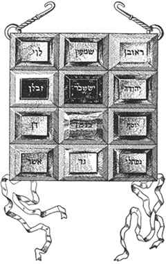 Последующее иудейское священство пошло от сыновей Аарона. Их одежды украшались наперсником (или нагрудником). Наперсник был из золотой ткани с 12 драгоценными камнями. 1 й ряд составили – рубин, топаз, изумруд; 2 й ряд – карбункул, сапфир и алмаз; 3 й ряд – яхонт, агат и аметист; 4 й ряд – хризолит, оникс и яспис. На каждом камне было выгравировано название одного из 12 колен израилевых. К нему прикреплены и некие священные предметы – Урим и Тумим (см.).