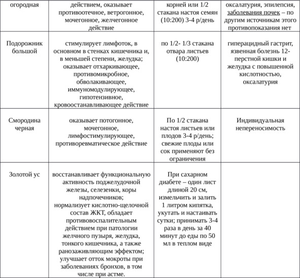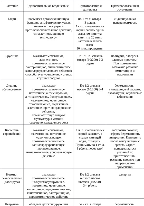 В таблице 1 представлены лекарственные растения, применение которых является достаточно эффективным способом стимуляции оттока тканевой жидкости.