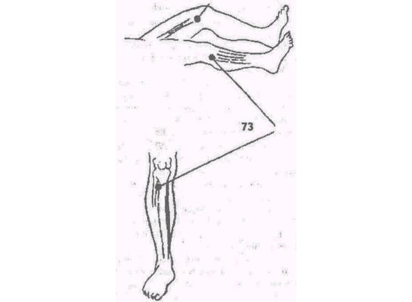 Вторая (рис. 2) – парная точка 73, расположена на передневерхней стороне ноги, у начала большеберцовой и малоберцовой костей.