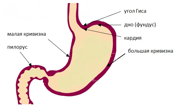 • дно (фундус) или свод – часть желудка, которая располагается левее и выше кардии;