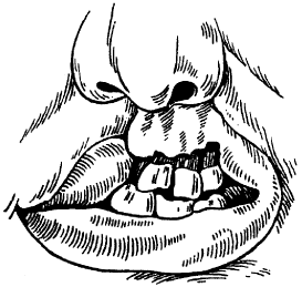 Рис. 12. Порок развития (расщелина верхней губы) (по: Мухин М. В., 1974).