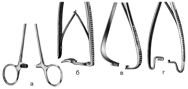 • кровоостанавливающие инструменты (кровоостанавливающие зажимы, лигатурные иглы, сосудистые зажимы);