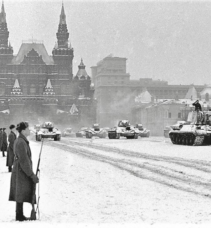 Чеканя шаг, шли батальоныВ парадно-боевом строю.Как снег, белы комбинезоны,И танки держат колею.На Мавзолее стоит Сталин,Приветствуя бойцов рукой,Как статуя, монументален.И знают люди, он – такой!Враг на пороге, но есть вера,Что наш народ непобедим!Падёт фашистская химера,Мы сил на то не пощадим!Идёт колонна за колоннойНа рубежи родной Москвы,Чтоб стать стеною обороннойКремля рубиновой главы!Владимир КуляевМосковский рубеж