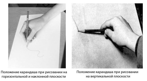 2. Как держат карандаш при рисовании на горизонтальной, наклонной, вертикальной плоскости?