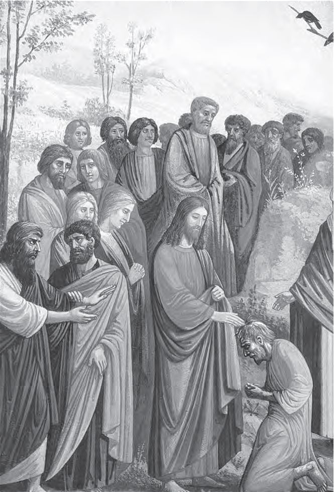 Избрав двенадцать апостолов, Господь взошел на гору и поучал учеников с собравшимся народом. После Нагорной проповеди Он сошел с горы, но за Ним продолжало следовать множество людей, не желавших расстаться с Божественным Учителем, благовествовавшим лето Господне благоприятное (см.: Лк. 4, 19).